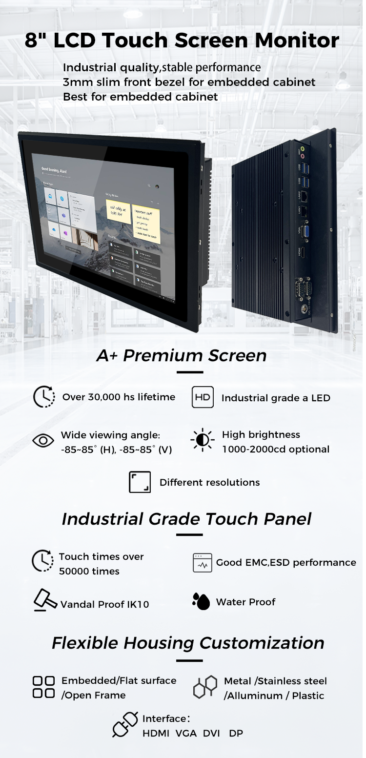 8 Inch TFT LCD Display Monitor , Touch Panel Monitor Anti Fingerprint Images |