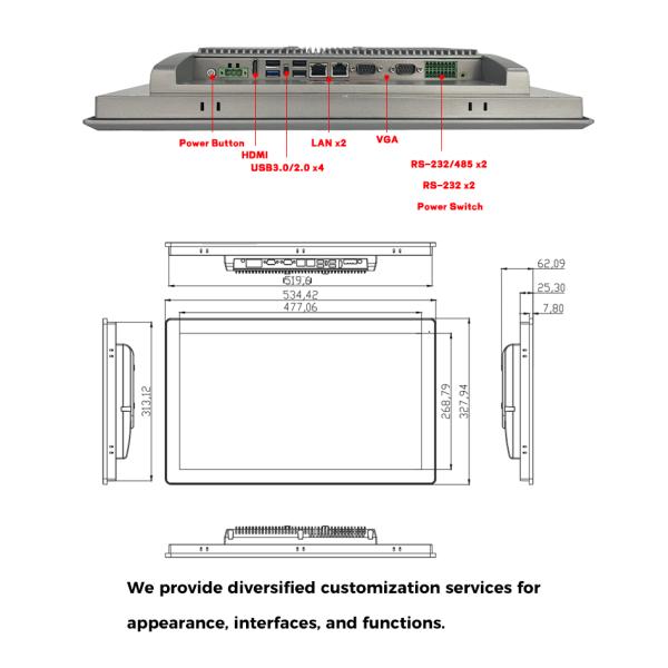 | I/O Port | 3 x USB2.0 , 1 x USB3.0 , 1xUSB2.0 dongle 2 x DB-9 COM1&COM2,RS -232/422/485 2 x 3-wire COM3&COM4 RS -232/485 with terminal block 2 x 3-wire COM5&COM6 RS -232 with terminal block 1 x Audio Line-out 2 x 8Ω 1W Audio AMP out 1 x Remote switch with terminal block 1 x AT/ATX switch 1 x HDMI 1 x 14bit GPIO (Optional) |
