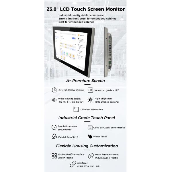 Multi Touch Waterproof Touch Screen Monitor 23.8 Inch Shock Resistance For Outdoor Images |